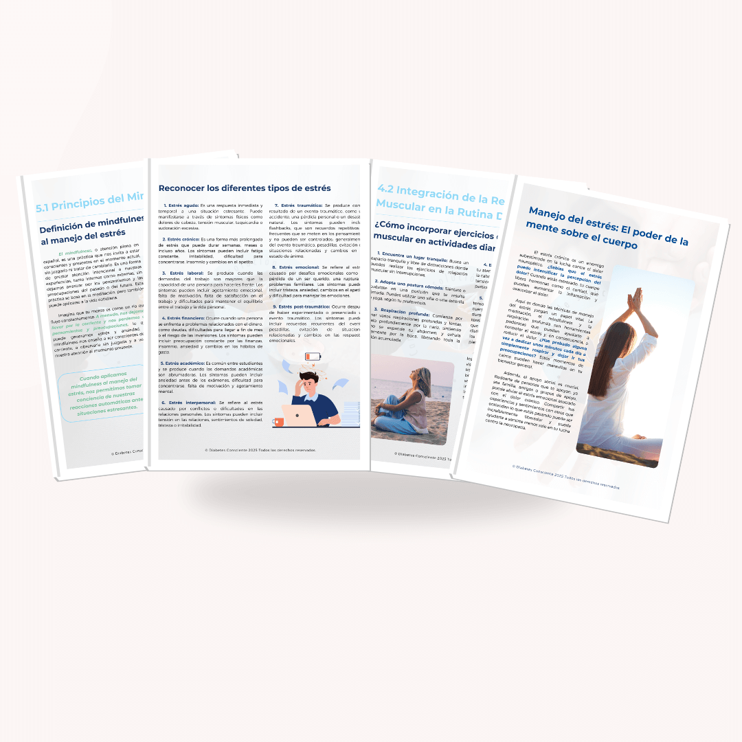 Descubre técnicas efectivas para controlar el estrés y mejorar tu diabetes. Aprende estrategias de mindfulness, ejercicios de relajación y hábitos saludables para equilibrar tu glucosa y alcanzar el bienestar integral. Guía esencial para personas con diabetes que buscan reducir el estrés y mejorar su calidad de vida. Descarga ahora y encuentra tu equilibrio perfecto entre mente y cuerpo.